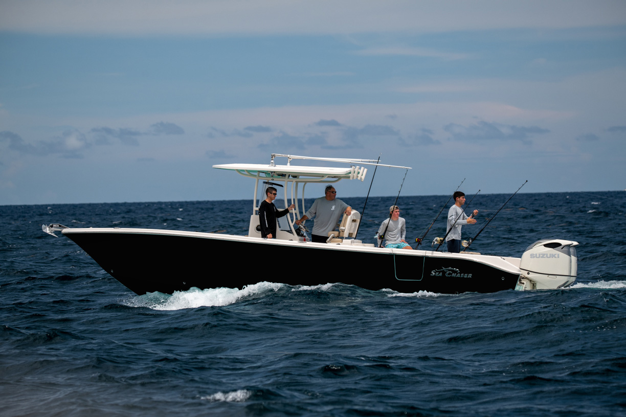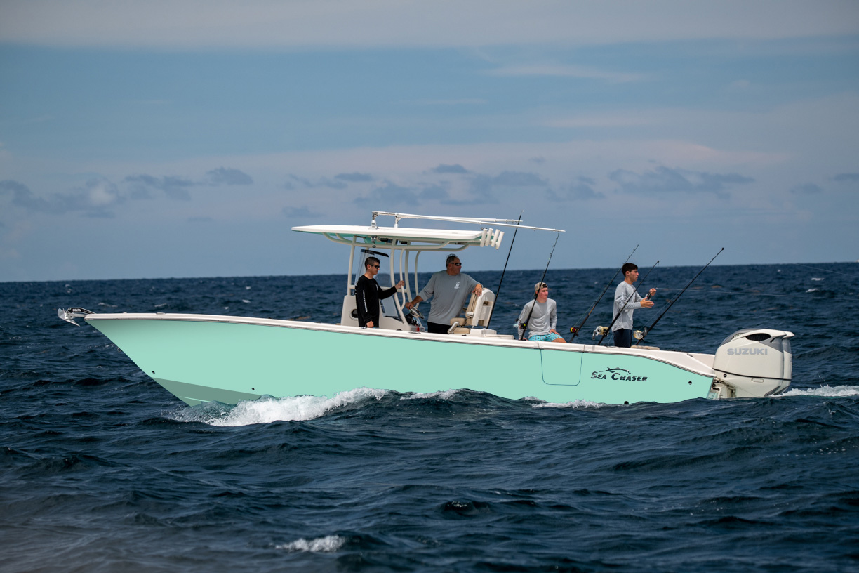 Introducing the 2025 model year 30 HFC Bluewater Series – a sought-after boat beloved by the pros, such as Captain Don Dingman from TV's Hook The Future. The 30 HFC is not only perfect for anglers, but also for families with features like the port-side entry door, fully electric head with Corian countertops, and stern swim platform for easy and safe access in and out of the water. Throughout the 30 HFC, find high-quality stainless steel hardware, such as fold-down cleats and flush-mounted rod holders, as well as comfortable deluxe two tone upholstery and plenty of seating. The 30 HFC features an in-floor fish box that easily doubles as storage and two livewells. Captain Don said, "I don't think you can find a better boat for the money than the 30 HFC. Take it from me, the 30 HFC delivers. I've been 80 miles out in the Atlantic with my family onboard. I wouldn't do that on just any center console, and you won't believe the price. This boat has it all with plenty of room to customize to your specific needs." Find a dealer near you today to see the 2025 model year 30 HFC Bluewater Series!